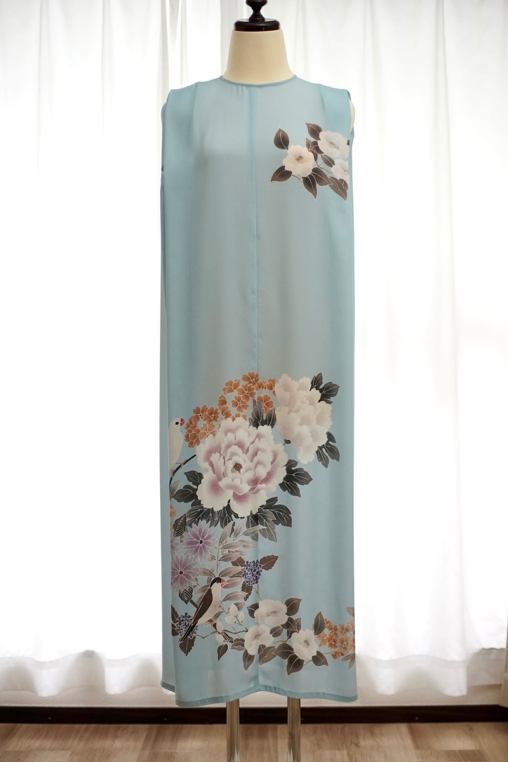 友禅アートワンピース「文鳥牡丹」「更紗」 57,200